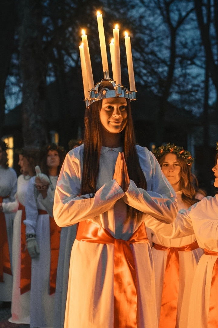 Atmospheric Lucia celebration from Sala in Västmanland, with a Lucia procession in Sätra Brunn church where singers from Sjöviks Folk High School and Sala Youth Choir participate. We also get solo singing down from the silver mine as well as music from the mining village and Brunnsgården. This year's Lucia is called Lova Fredling.