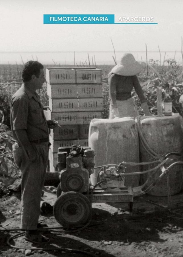 Maspalomas, in the south of the Gran Canaria island, as well as an international tourist centre, is also an important agricultural centre dedicated to tomatoes. The lands are cultivated by families from all around the island who work not as salaried workers but as sharecroppers (aparceros). These families, during the seven months that the harvest lasts, live in barracks built by the owners in the same land they cultivate. Between tomatoes, the aparceros cultivate other products for their own food and for their animals. Water is scarce and it's really appreciated. At the end of the harvest, the day of San Fernando, the aparceros celebrate in popular festivities, which include cockfighting and lucha canaria. This documentary was recorded in 1972, but couldn't be shown until the year 1977, as the Franco regime's censorship retained its exhibition permit.